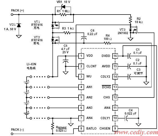 | 图4 4节锂电池充电电路的典型保护电路 |